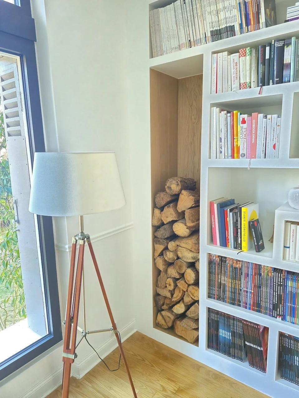 Bibliothèque avec bucher intégré